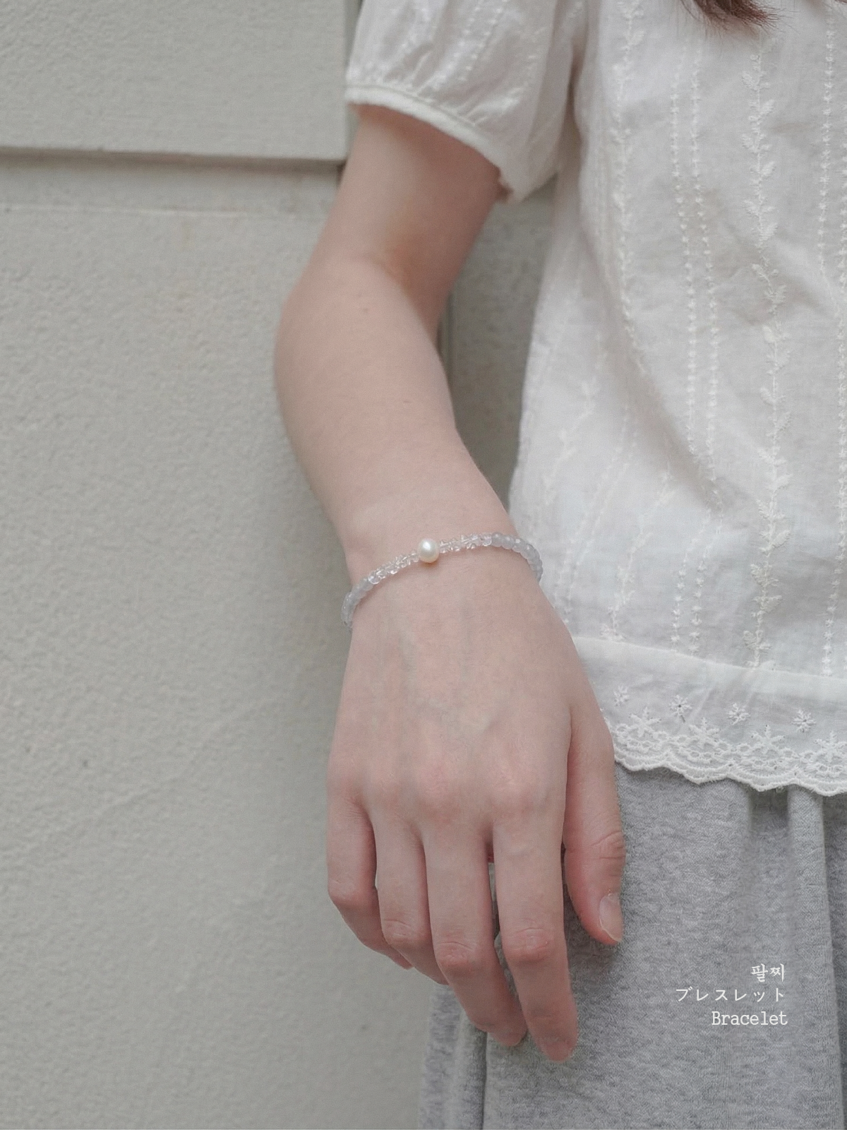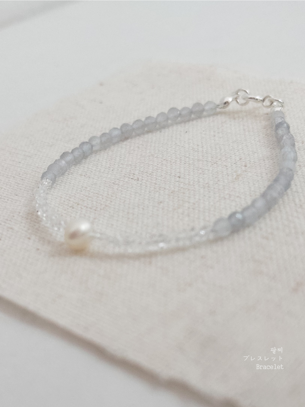 Inspired by the soft glow of moonlight, the Grey Moonstone Herkimer Pearl Bracelet features luminous grey chatoyancy beads paired with naturally faceted Herkimer diamond quartz beads. At the center, a single freshwater pearl adds a gentle, organic contrast to the crystal clarity of the stones. The Grey Moonstone Herkimer Pearl Bracelet is for those who carry their calm with them — a wearable reminder that the most meaningful things are always understated.