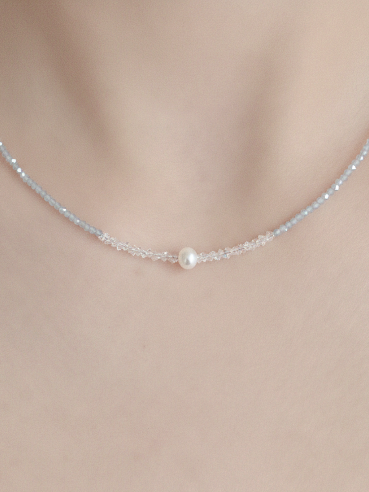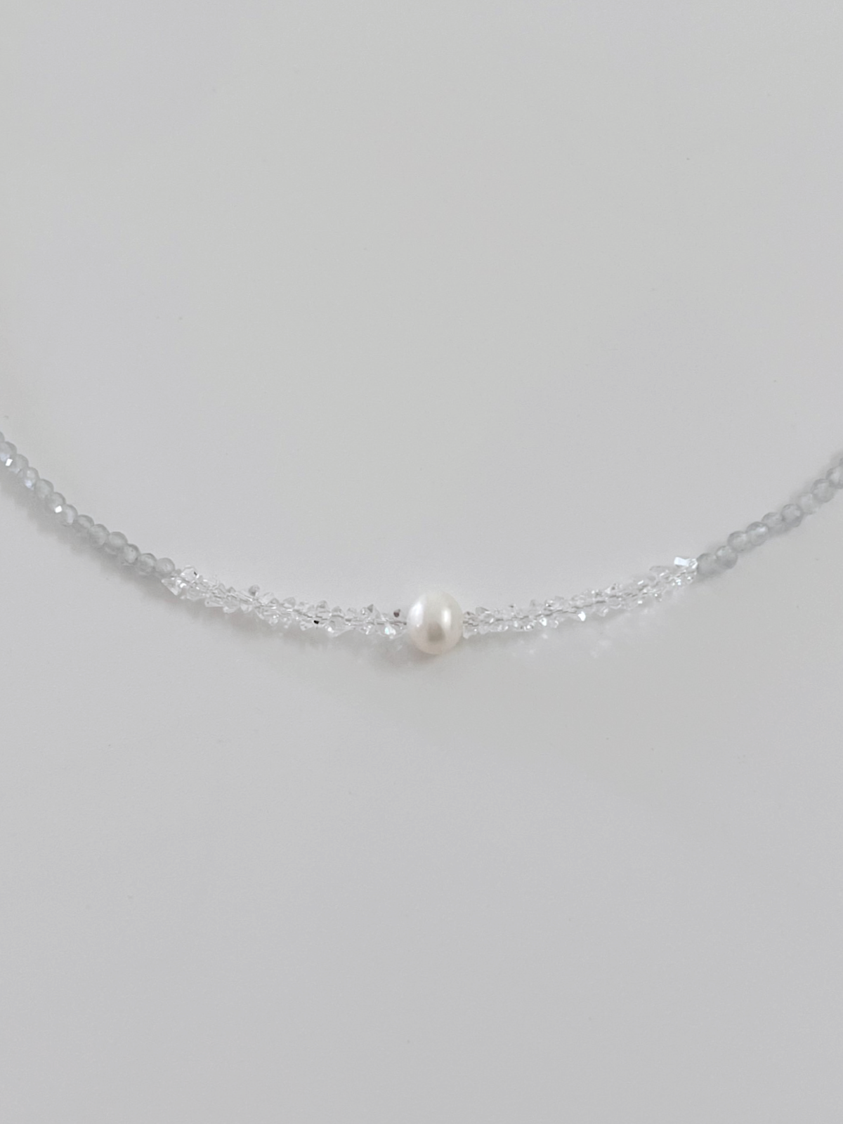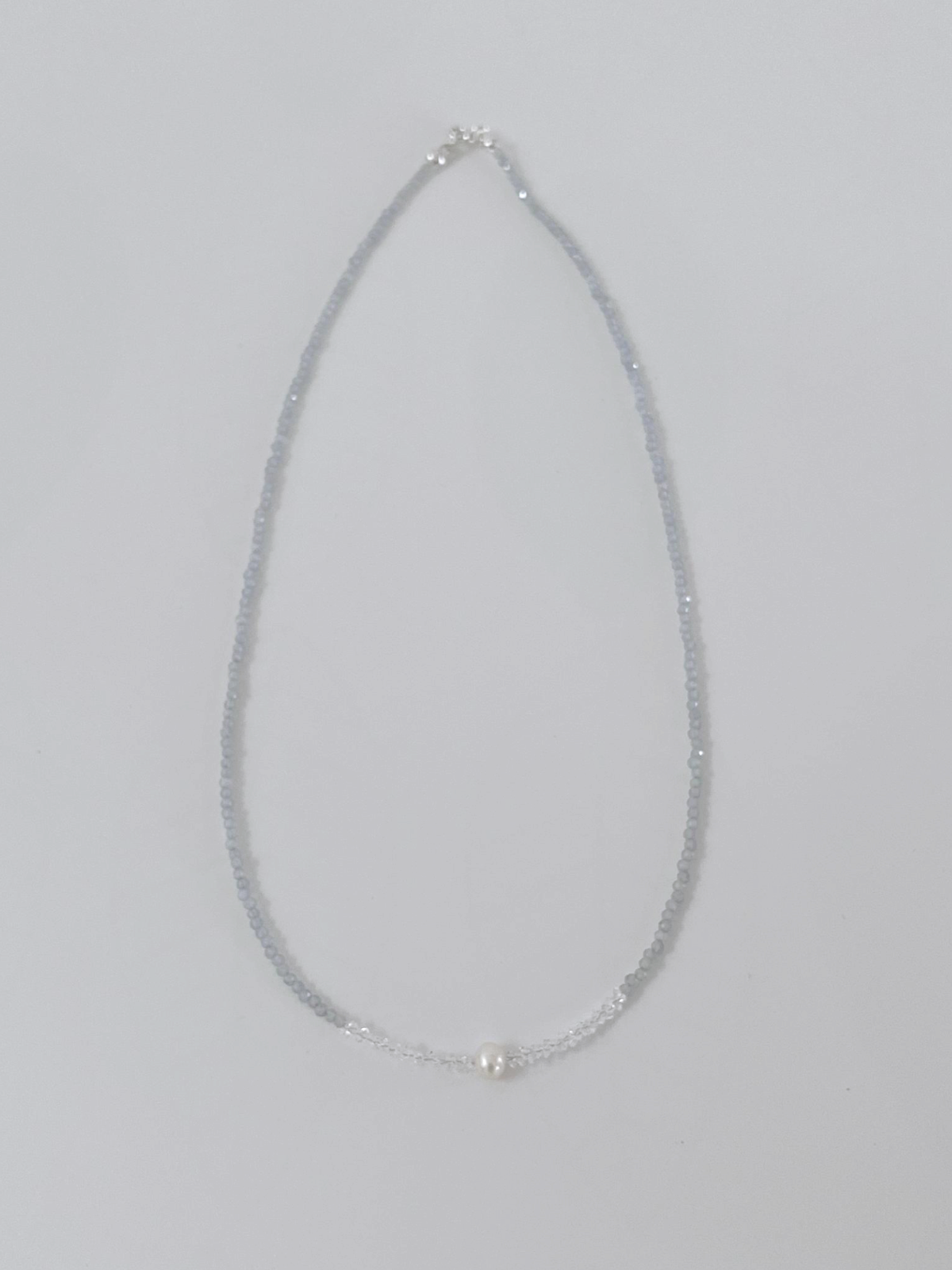 Material: Luminous grey beads, Herkimer diamond quartz beads, Freshwater pearl, S925 plated clasp